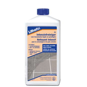 Lithofin KF Intensiefreiniger is een concentreerde, alkalische reiniger uit het Lithofin-assortiment, speciaal ontwikkeld voor keramische tegels en gres porcellanato (KF). Het product verwijdert effectief hardnekkig vuil, olie- en vetlagen, rubber- en schoenvegen, polymeer- en waslagen, en zelfs zelfglanzende emulsies, zonder oplosmiddelen te gebruiken.