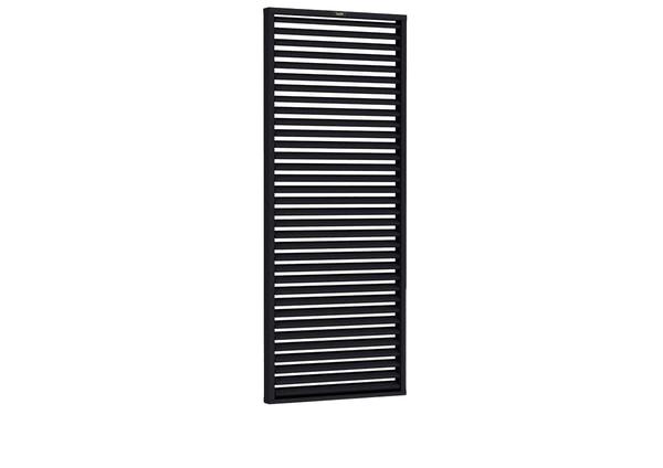 Het Shutterscherm Excellent vuren zwart 90 x 224 cm is een stijlvolle en functionele oplossing voor het creëren van privacy en sfeer in uw tuin of tuinverblijf. Dankzij het karakteristieke shutterdesign met beweegbare houten lamellen voegt dit scherm een speels en modern element toe aan iedere buitenruimte.